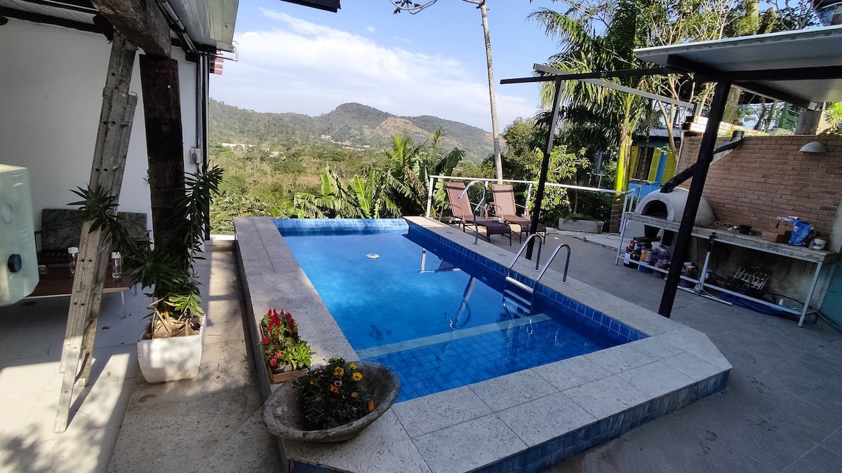 ¡Casa con vistas impresionantes! Piscina privada... Casa completa. 90 m2. Habitación con dos habitaciones y lavabo. Cocina. Sofá grande retráctil. Suite con balcón y cama tamaño king. Smartv 60". Una parrilla para barbacoa. preguntas frecuentes: ¿La piscina es compartida? No. La piscina es privada en esta casa. ¿Es una habitación? No. Es una casa con sala de estar, cocina y suite. Junto al restaurante Don Pascual. A 15 minutos del centro comercial Recreio.