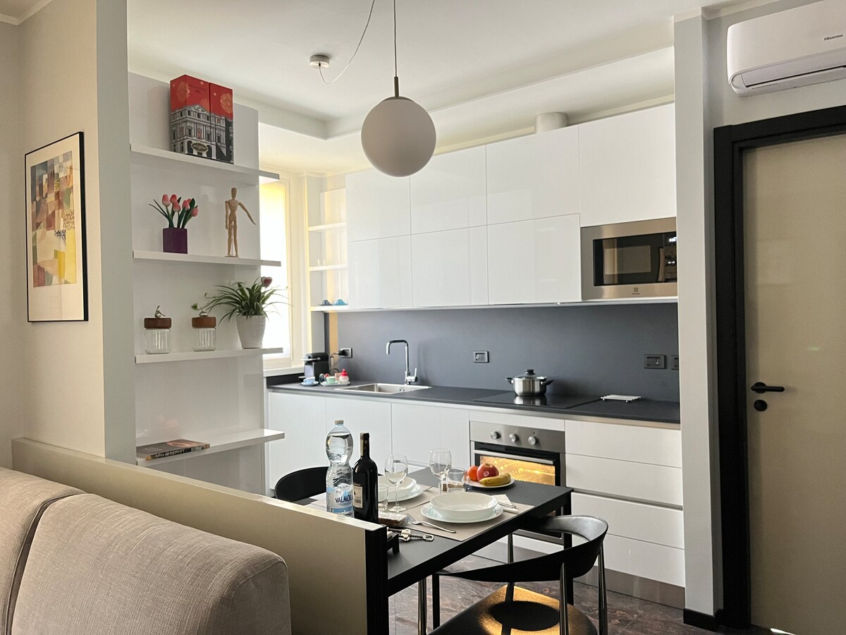 EN LA CALLE MÁS IMPORTANTE DE MILÁN, Corso Vittorio Emanuele, a solo unos pasos de la catedral DEL DUOMO (a 2 minutos a pie) y de todos los principales puntos de interés. Está ubicado en el cuarto piso panorámico de un edificio histórico, en un contexto elegante y prestigioso. Lujosa suite amueblada en un estilo moderno con: habitación de lujo con cocina completa, baño de mármol. Limpio y cómodo. Edificio con ascensor. Aire acondicionado y wifi en todo el apartamento.