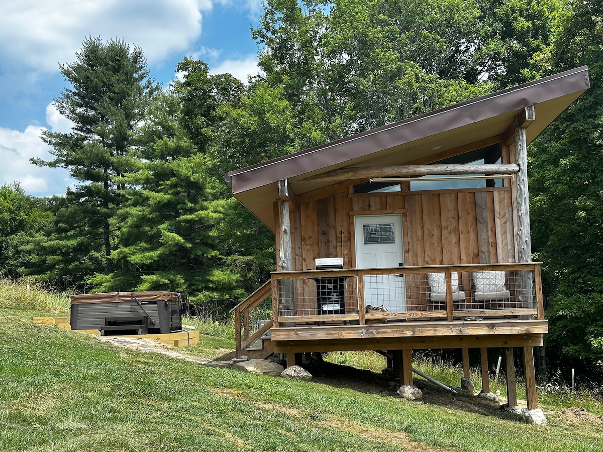 La cabaña es una lujosa escapada rural, con un jacuzzi para 3 personas. Ubicado en una granja de permacultura y santuario de plantas nativas, el espacio tiene vistas al jardín y está rodeado de bosque. Se utilizaron materiales naturales/locales en todas partes (construida en 2023). Para grupos más grandes, echa un vistazo a la casa de huéspedes de al lado (Airbnb: Casa de huéspedes en granja cerca de Floyd/Blacksburg). A unas 10 millas de Floyd, a unas 20 millas de Blacksburg y a unas 35 millas de Roanoke.
