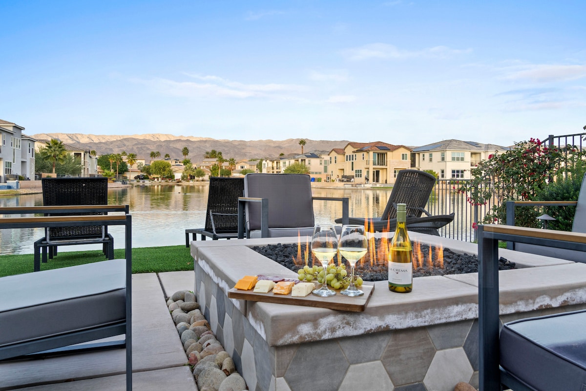 Welcome to your private lakefront escape in Terra Lago — a designer 4 bedroom, 3 bathroom home with breathtaking lake and mountain views just 6 miles from the Coachella grounds. Thoughtfully furnished with curated designer pieces and four king beds, the house is ideal for families or groups who want comfort, space, and style. Spend evenings relaxing in the heated spa, grill lakeside on the stainless BBQ, or cozy up inside while enjoying panoramic water views.