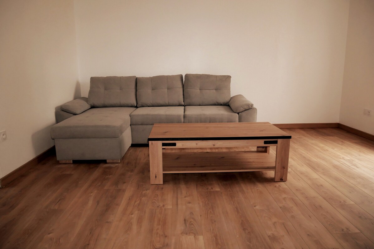 En La Roche sur Yon, casa de 70 m2, situada a 30 minutos de Les Sables d'Olonne, en una zona residencial con jardín donde a los pájaros les gusta posarse. SALA DE ESTAR: pantalla grande-Sofá eléctrico-Estufa de leña DORMITORIO: Cama de 160 cm–Armarios-Cama hecha CUARTO DE BAÑO: bañera/ducha-Se proporciona ropa de cama COCINA: equipada. Productos de limpieza incluidos MÁS: toma reforzada para carga de coche eléctrico PRÁCTICO: autobús a 50 metros Su anfitrión le facilitará la llegada. Gâche vendéenne ofrecida a partir de 5 días