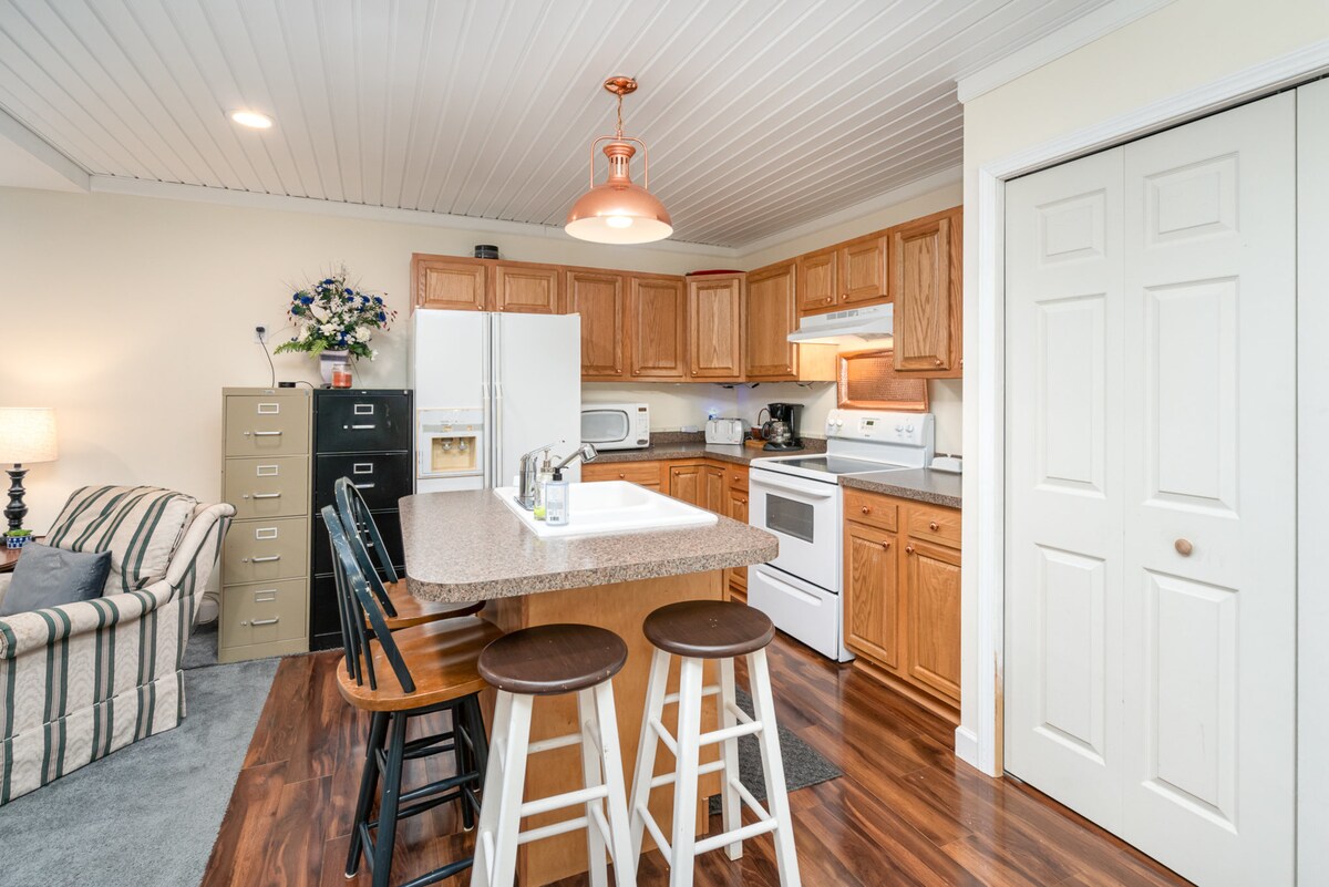 Olvídate de las preocupaciones en este gran alojamiento: ¡es un oasis de tranquilidad! Tranquilo, seguro y fuera de los límites de la ciudad. Entrada privada y calefacción y refrigeración dedicadas. Chimenea eléctrica para las noches frías. Cama tamaño queen y sofá cama extraíble de tamaño completo. Televisión inteligente en el salón y el dormitorio. Escritorio, PC e impresora para tu uso. Cocina totalmente equipada con todos los electrodomésticos y utensilios. Ducha a ras de suelo, lavadora y secadora apilables y vestidor. Toda la propiedad es accesible para personas con discapacidad.