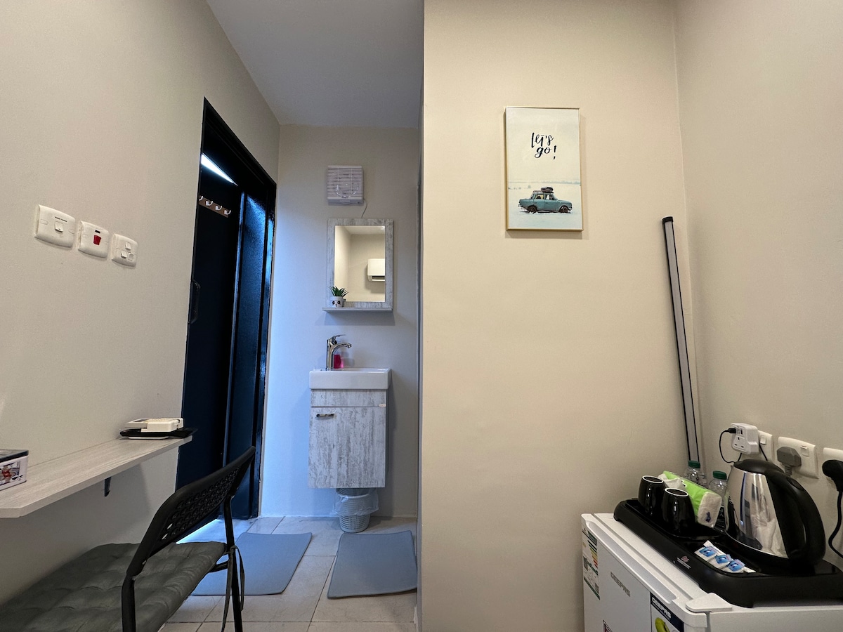 Bienvenido a un estudio elegante y tranquilo ubicado en la parte trasera de una villa familiar en Al Hamra. Disfruta de una alta privacidad, aunque la entrada es compartida. El estudio tiene una cama ordenada, un sofá, TV, una mesa de café y un moderno baño equipado con todo lo básico. El lugar es adecuado para una o dos personas, ya sea que estés de negocios o de visita relajante.