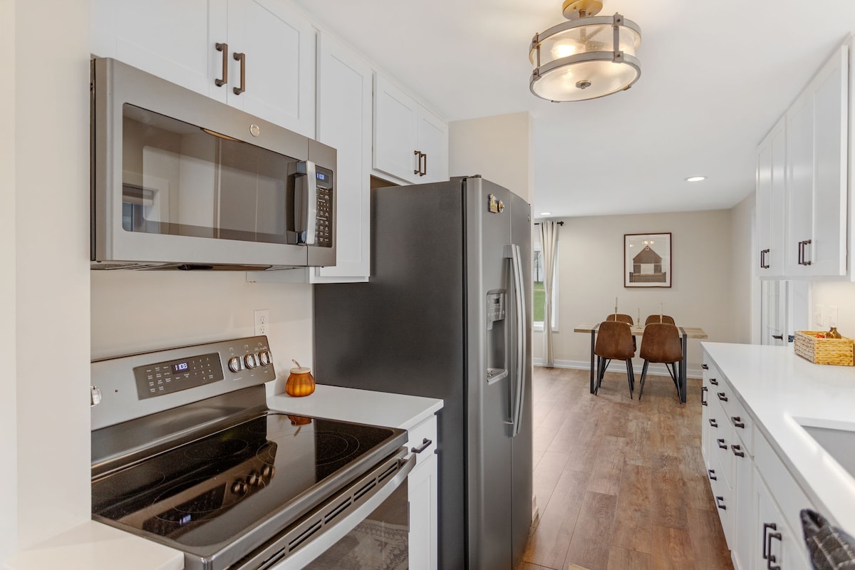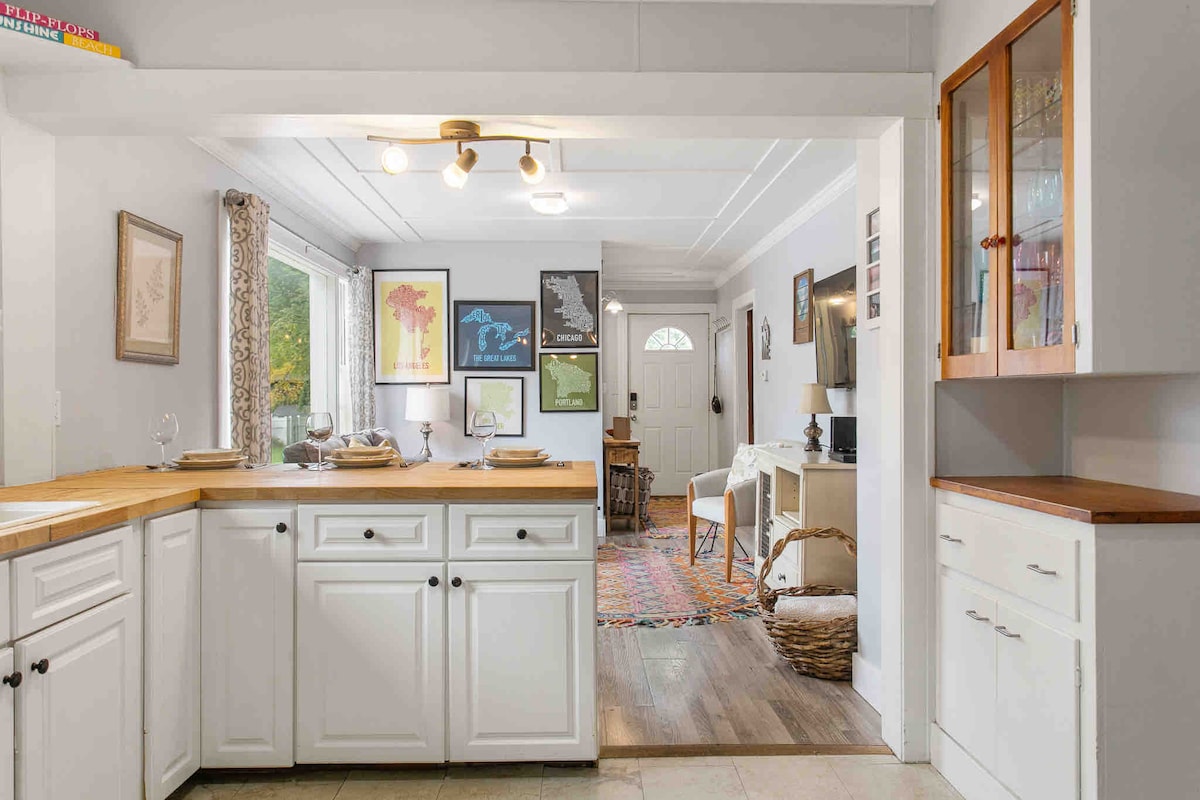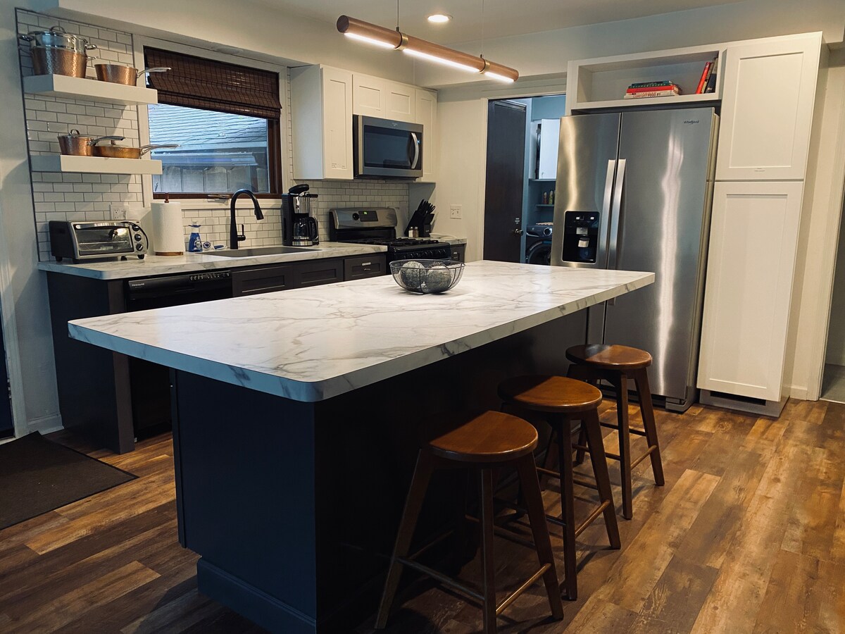 ¡Te doy la bienvenida a mi casa bellamente renovada! Ambos baños se han reformado por completo y ahora cuentan con pisos pulidos y duchas de baldosas. Se actualizaron todas las lámparas y ventiladores de la casa. La cocina tiene un maravilloso lavado de cara con nuevas encimeras de cuarzo y pisos de tablones de vinilo. ¡El patio trasero cuenta con una nueva parrilla Weber! ¡Ven a disfrutar de un fuego en la chimenea y asa malvaviscos con la leña proporcionada y todo el equipo! ¡Estás a pocos pasos del centro de la ciudad y a poca distancia en coche de la playa!