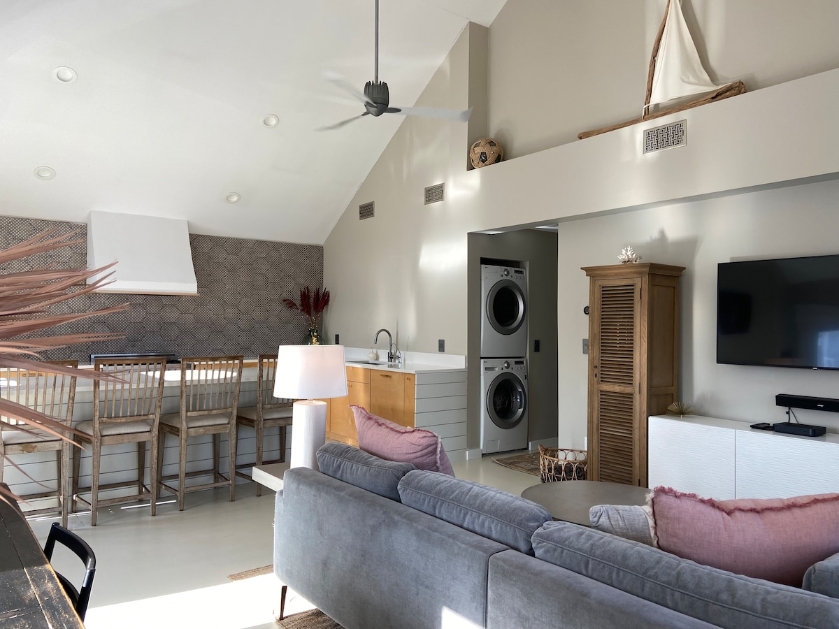¡Esta es la escapada perfecta a la playa! Diseño abierto con ventanas, luz solar y comodidad en todas las habitaciones, desde el estudio hasta los dormitorios y el patio trasero. Lee un libro en una silla acogedora, ve una película en el estudio o juega y haz una barbacoa al aire libre. Puedes ir en bicicleta o caminar hasta la playa (pases incluidos) o quedarte y relajarte en una espaciosa y relajante hamaca. Todo lo que necesitas para tu casa de verano está aquí. ¡A poca distancia a pie o en bicicleta de la playa y de un montón de restaurantes, bares, etc. cercanos!