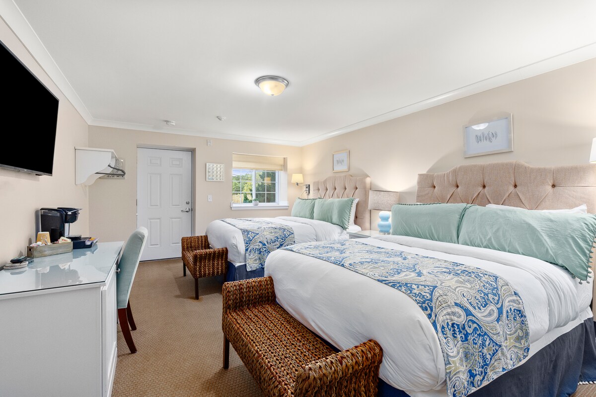 Ubicadas en las plantas 2.ª y 3.ª del Main Inn, las habitaciones del Country Inn son bastante pequeñas pero están elegantemente decoradas. Todas las habitaciones están decoradas individualmente con (1) cama queen, baños privados con ducha y servicios estándar. Estas habitaciones tienen pequeños baños y buhardillas sobre las camas/ventanas. Las habitaciones incluyen nuestro desayuno buffet y wifi. No hay vistas al mar, pero la playa está a pocos pasos. *No apto para cunas o cunas de viaje, máximo 2 huéspedes * **Ten en cuenta que NO hay ASCENSORES en ninguno de nuestros edificios.
