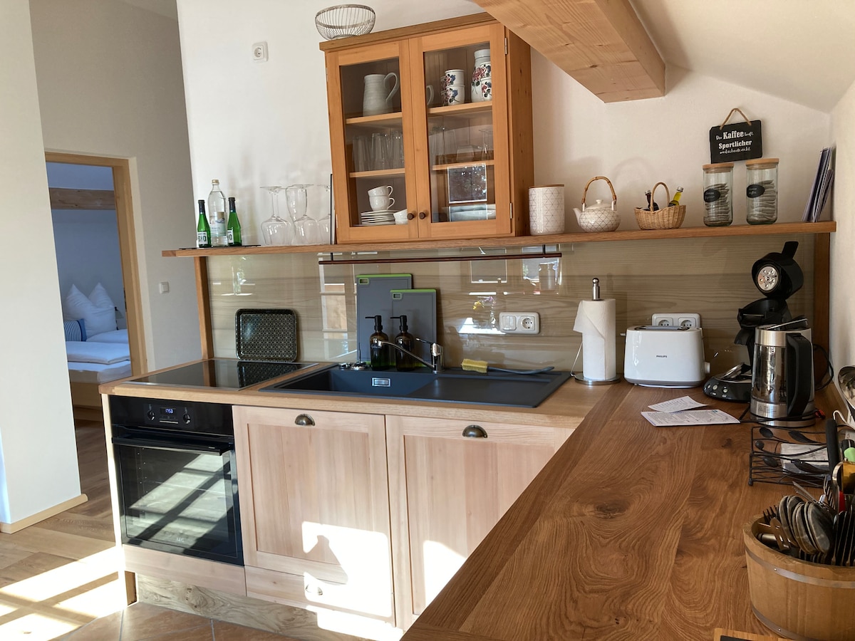 El apartamento loft de diseño consta de una habitación espaciosa con un gran sofá cama (para dormir) y TV, así como una cocina totalmente equipada con lavavajillas y un baño moderno de uso exclusivo. La casa está situada en una zona tranquila en medio del bosque, en un claro. Aparcamiento justo delante de la puerta. Un lugar para relajarse y recargar energías. Panadería y restaurantes en el pueblo a poca distancia. Lagos de baño (Chiemsee, entre otros) excursiones en bicicleta (BikePark Samerberg) y las montañas están justo delante de la puerta.