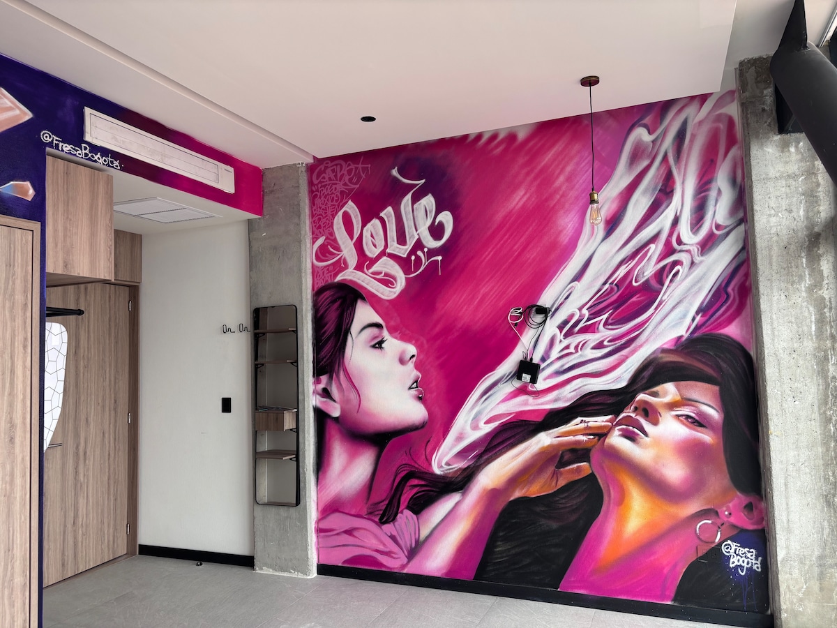 Suite Love on the Wall, cama tamaño king, nevera, microondas, café.