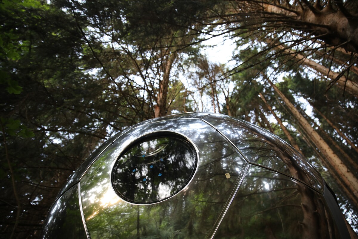 Cocoon con esfera de espejos: montaña y jacuzzi