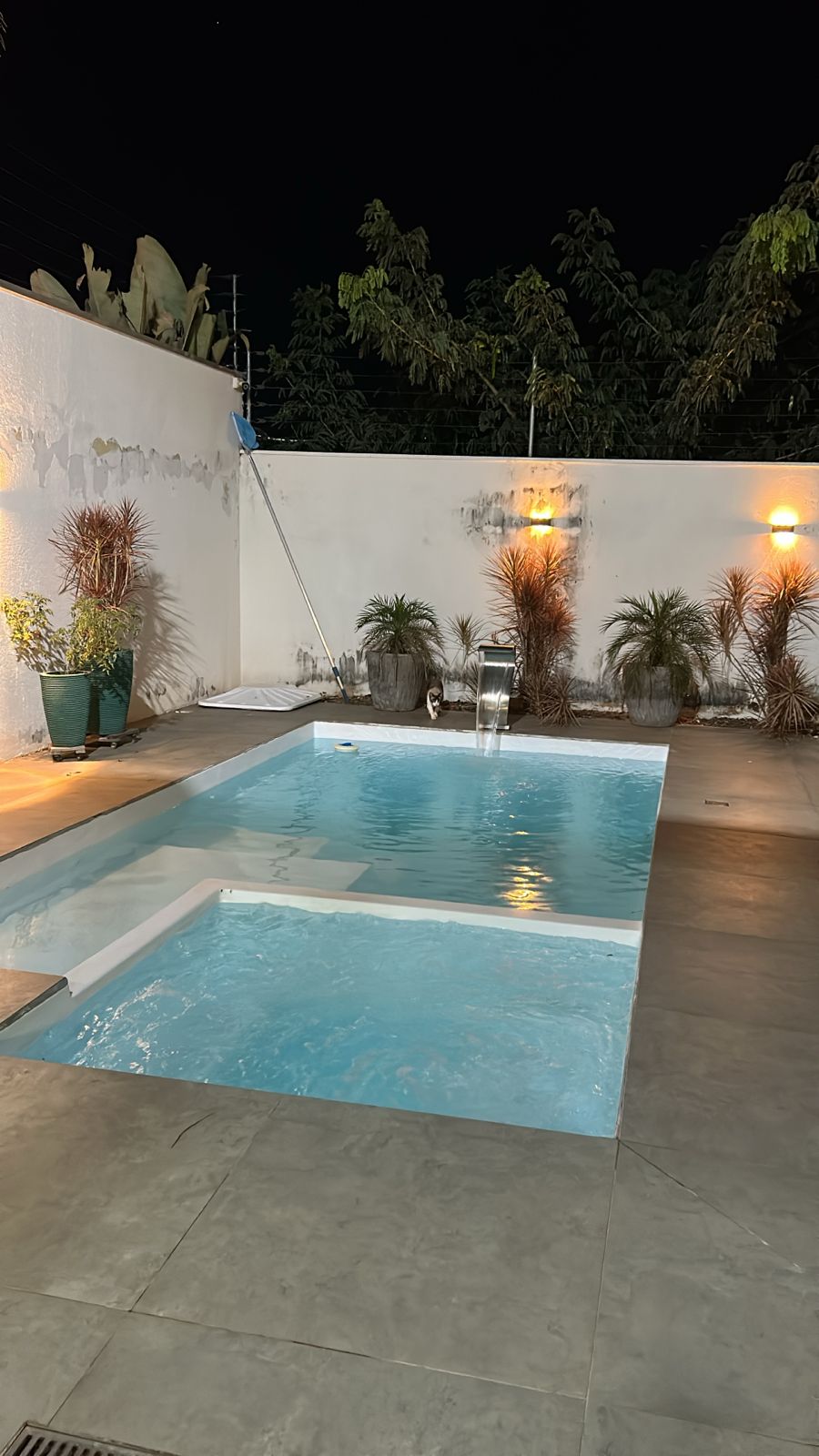 Olvídate de tus preocupaciones en este lugar tranquilo y espacioso. Cerca del centro, mercados, farmacias y salidas de la ciudad, la casa tiene una gran piscina, con espacio para niños y limpiada por un profesional dos veces por semana, un espacio exclusivo para tener su barbacoa también. La casa tiene cámaras de seguridad en la entrada de la casa, incluida la zona de la piscina. La casa es individual, tiene 1 dormitorio pequeño con 2 camas individuales y 1 suite con una cama tamaño king + 1 colchón doble, ambos con aire acondicionado.