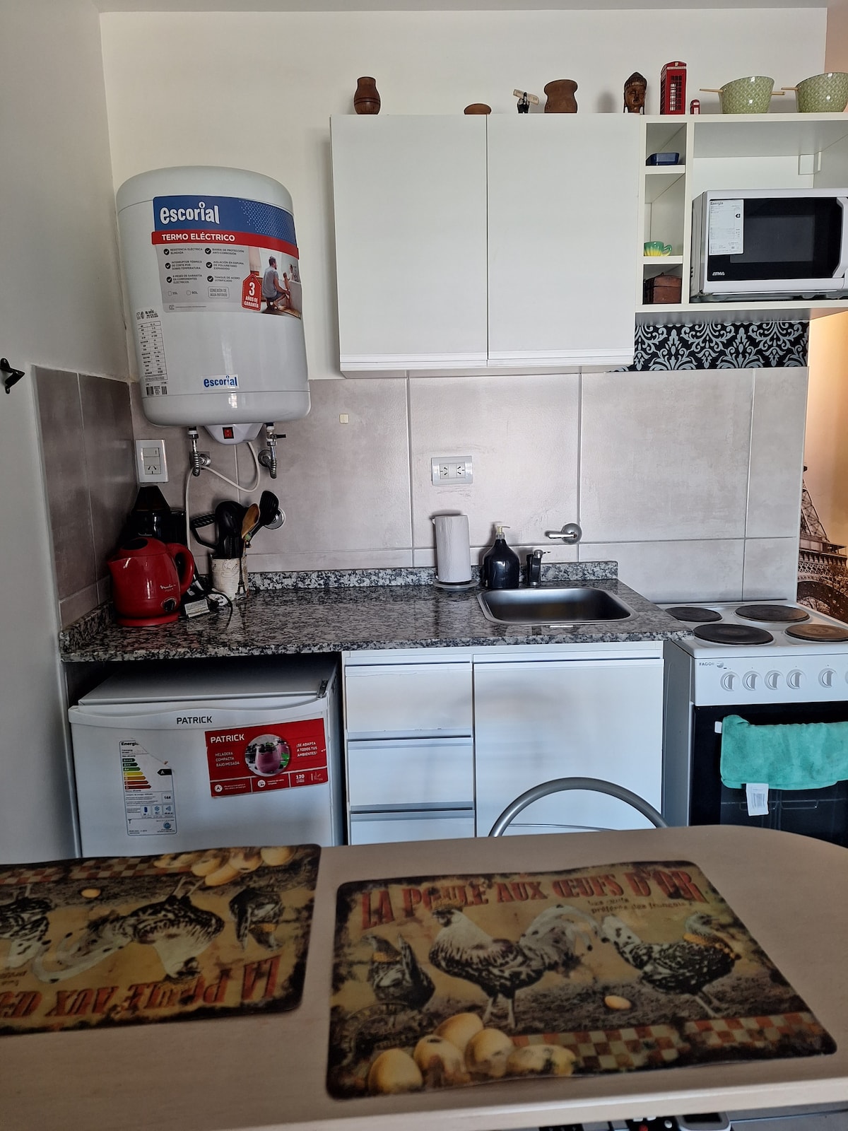 El alojamiento es un monoambiente muy luminoso y confortable, ventilación cruzada. El departamento se encuentra ubicado en el segundo piso se accede por escaleras. El mismo se encuentra en proceso de decoración especialmente para nuestros huéspedes y posee una cocina con amoblamientos amplios y muy completa (horno eléctrico, anafe eléctrico, cafetera, tostadora, heladera, pava elèctrica).