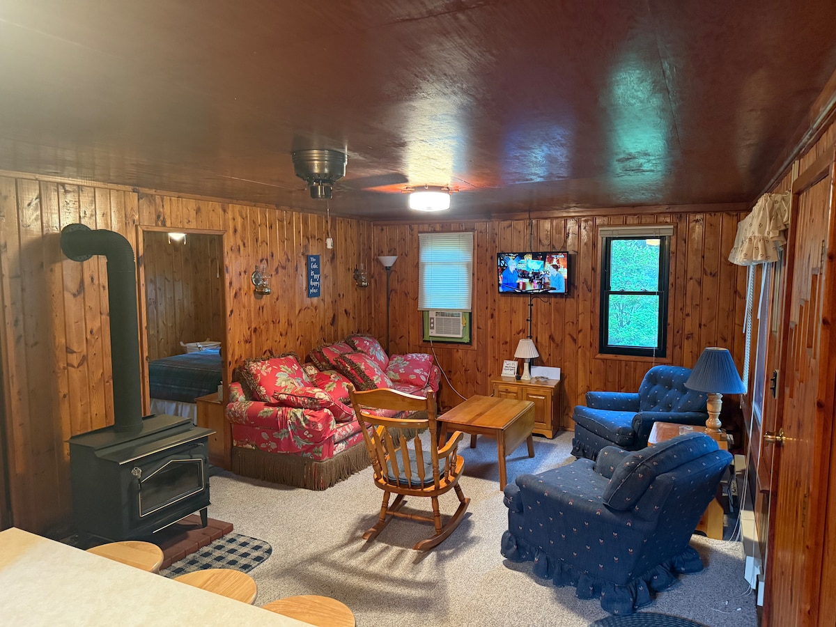 Disfruta de esta acogedora cabaña en la zona del Bosque Nacional de Huron. ¡Ubicada al otro lado de la carretera del hermoso río AuSable! Un gran río para hacer kayak (4 incluidos), piragüismo (1 incluido) y una famosa pesca de truchas. ¡Ven y disfruta de todos los senderos locales para practicar senderismo, ciclismo de montaña, todoterreno y motos de nieve! ¡O simplemente siéntate y relájate alrededor de una fogata! La cabaña está totalmente amueblada con ropa de cama, toallas, paños de cocina, etc. y una cocina totalmente equipada y parrilla de gas. Hay juegos al aire libre y bajo techo. DVD y películas.