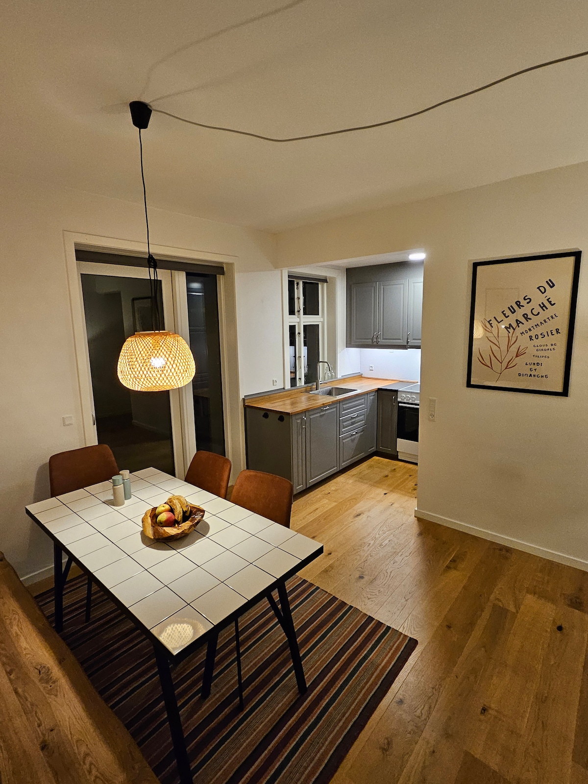 Velkommen til en lys og charmerende 3 værelses lejlighed med en privat tagterrasse midt i Roskilde. Her finder du 2 komfortable soveværelser, en indbydende stue, fuldt udstyret køkken og moderne badeværelse. Til hyggen er der pladespiller med anlæg, perfekt til at nyde musik. Selvfølgelig er der trådløst WiFi, så du altid er online. Den store tagterrasse på 50 km2 giver masser af plads til at slappe af, spise ude med bbq og nyde solen. Lejligheden ligger meget centralt