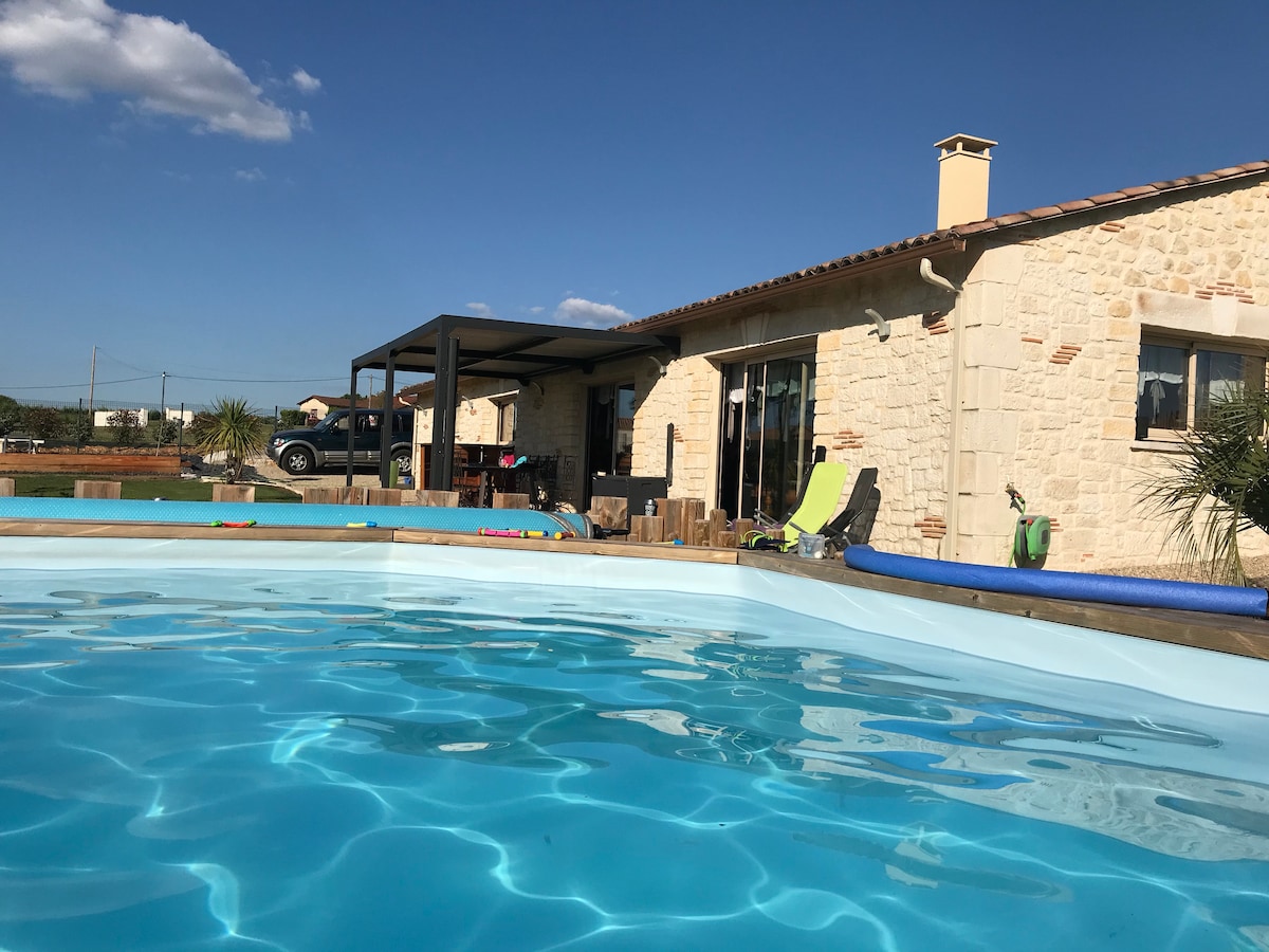 Venga a relajarse, a encontrar la serenidad en medio de los viñedos frente al valle de la Dordoña. La finca incluye nuestra casa y 2 casas rurales para 2 personas. Le ofrecemos esta casa rural de 4 estrellas, con terraza privada, cocina equipada, barbacoa y piscina. Renovado en 2017 con un espíritu de casa de campo, cuenta con todas las comodidades. Una gran sala de estar luminosa, una cocina equipada, un dormitorio con una cama de 160 cm y ropa de cama de hotel de lujo.
