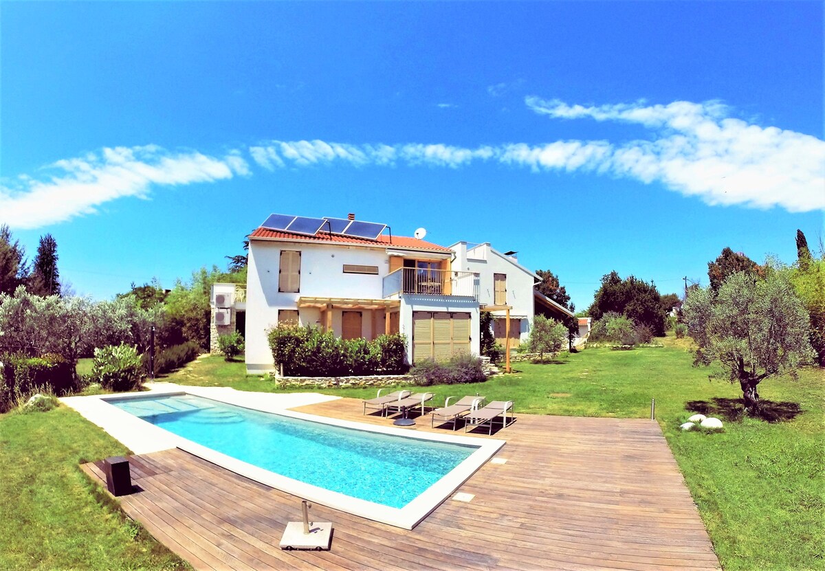 Relájate con tu familia en este cómodo alojamiento lejos del ajetreo de la ciudad. Prueba la vida de nuestra finca agrícola a la sombra de robles centenarios y con una gota de vinos de fama mundial a pocos metros de distancia. Apartamento con vistas al mar y al valle del río Mirna, rodeado de viñedos y olivares. Como parte de nuestro complejo, ofrecemos frutas y verduras de la producción ecológica. Hay un jardín privado de 1200 m2 disponible para nuestros huéspedes.