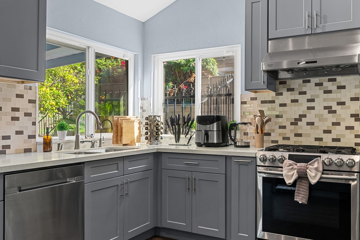 Art-filled retreat with unique artifacts, a lush garden with vibrant plants and vegetation, small pond, private pool & spa, firepit, and outdoor kitchen. Relax in a quiet cul-de-sac with two shaded patios, modern entertainment including streaming TVs, surround sound, a small pool table, and an Xbox. Ideal for families, friends, couples, or business travelers seeking comfort, privacy, and a memorable Southern California stay near Disneyland and major attractions.