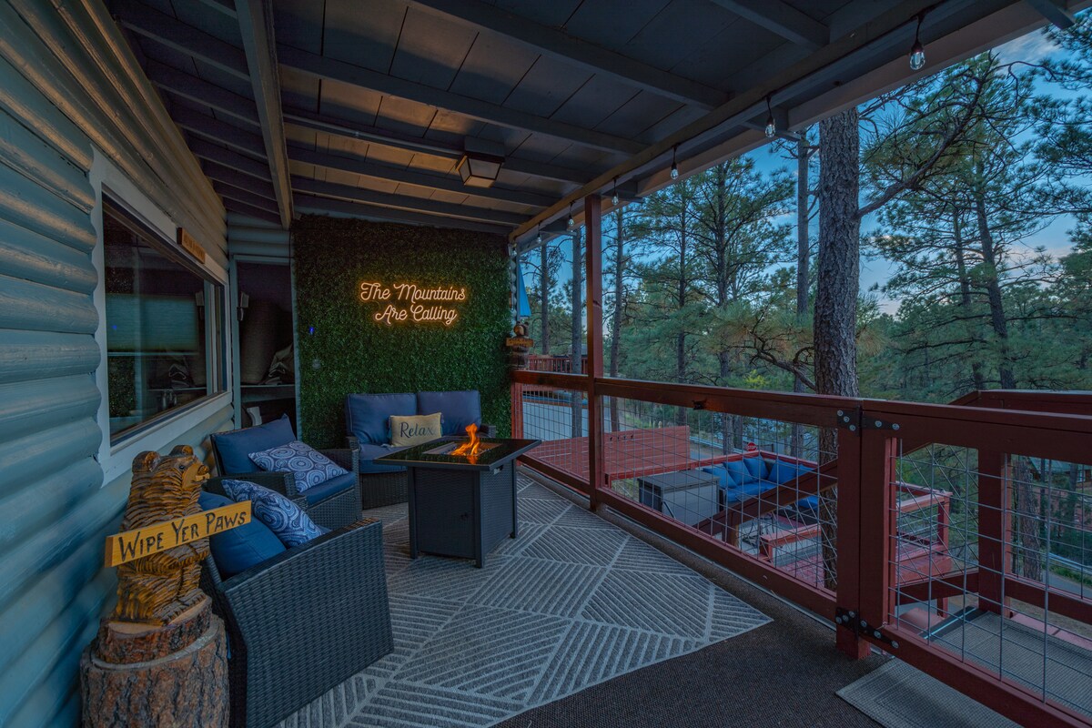 Bienvenido a este sereno escondite de montaña, cerca del corazón de Ruidoso. Ubicada entre altos pinos, la cabaña Palomino Pines es el lugar perfecto para escapar y disfrutar de la belleza de la naturaleza. Ya sea que estés buscando una escapada romántica, un viaje con amigos o unas vacaciones familiares, este es el lugar ideal para tu próxima aventura. Explora el extraordinario aire libre, observa la vida silvestre y disfruta de todo lo que el pueblo de Ruidoso tiene para ofrecer. Vuelve para relajarte con amplias terrazas y vistas nocturnas estrelladas desde el jacuzzi.