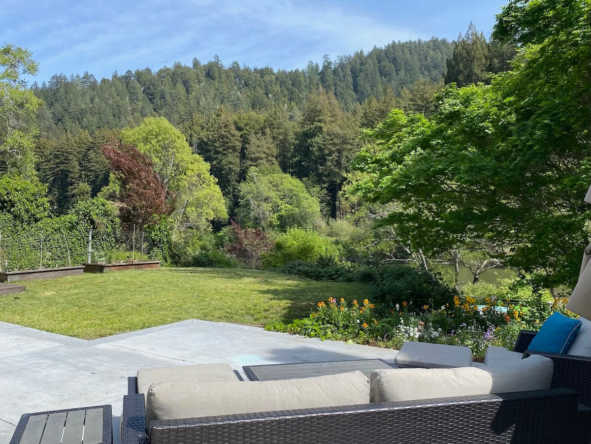 Surrounded by redwoods, with a sprawling grass lawn and direct river access, Riverwood has everything you need to enjoy a relaxing and refreshing vacation! LAST MINUTE SPECIALS -- 10% off rental cost when arriving within ten days of booking! Or, minimum night requirement may be waived! Message owner for details.
