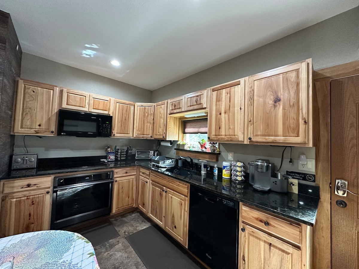 A solo 5 millas del TIEC, una acogedora casa de huéspedes en el bosque, ubicada detrás de la casa principal con estacionamiento privado (y estacionamiento adicional para camiones grandes) y espacio exterior privado. Esta cabaña estudio es perfecta para familias o una pareja que busca una escapada. A los niños les encantará la cama loft (dos camas individuales) y la cocina compacta te ofrece todos los servicios que necesitas para cocinar y servir una comida completa si lo deseas. Te encantará la privacidad y seguridad de la comunidad cerrada.