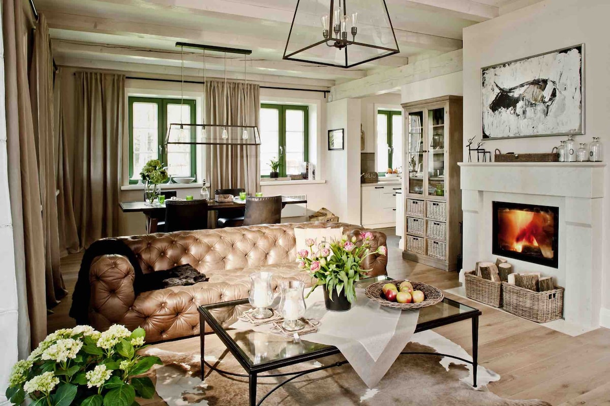 Bright and airy, open plan timber cabin set in beautifully peaceful Polish countryside. Surrounded by forests, meadows and duck-pond. Many lakes nearby! Domek z bala, plan otwarty i przeztrzenny w pieknej spokojnej okolicy na Mazurach. Otoczony lasami, polami; ze swoim wlasnym stawem. Blisko jeziora!