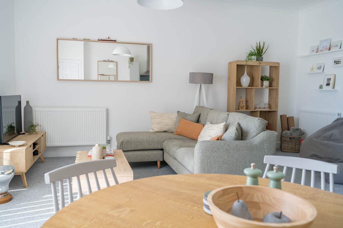 Amplio apartamento con características de época. Preciosa sala de estar con 2 sofás, ventana de bahía con vistas al mar. TV Sky Glass de 55 pulgadas, dormitorio grande con vistas tranquilas al jardín trasero. Cama doble y 1 cama plegable con colchón adecuado disponible. Baño con ducha eléctrica sobre la bañera. Cocina luminosa con puertas dobles en la zona del patio elevado, perfecta para tomar un café por la mañana y bajar a un gran jardín privado cerrado. Permisos de estacionamiento proporcionados para el estacionamiento en la calle fuera de la propiedad.