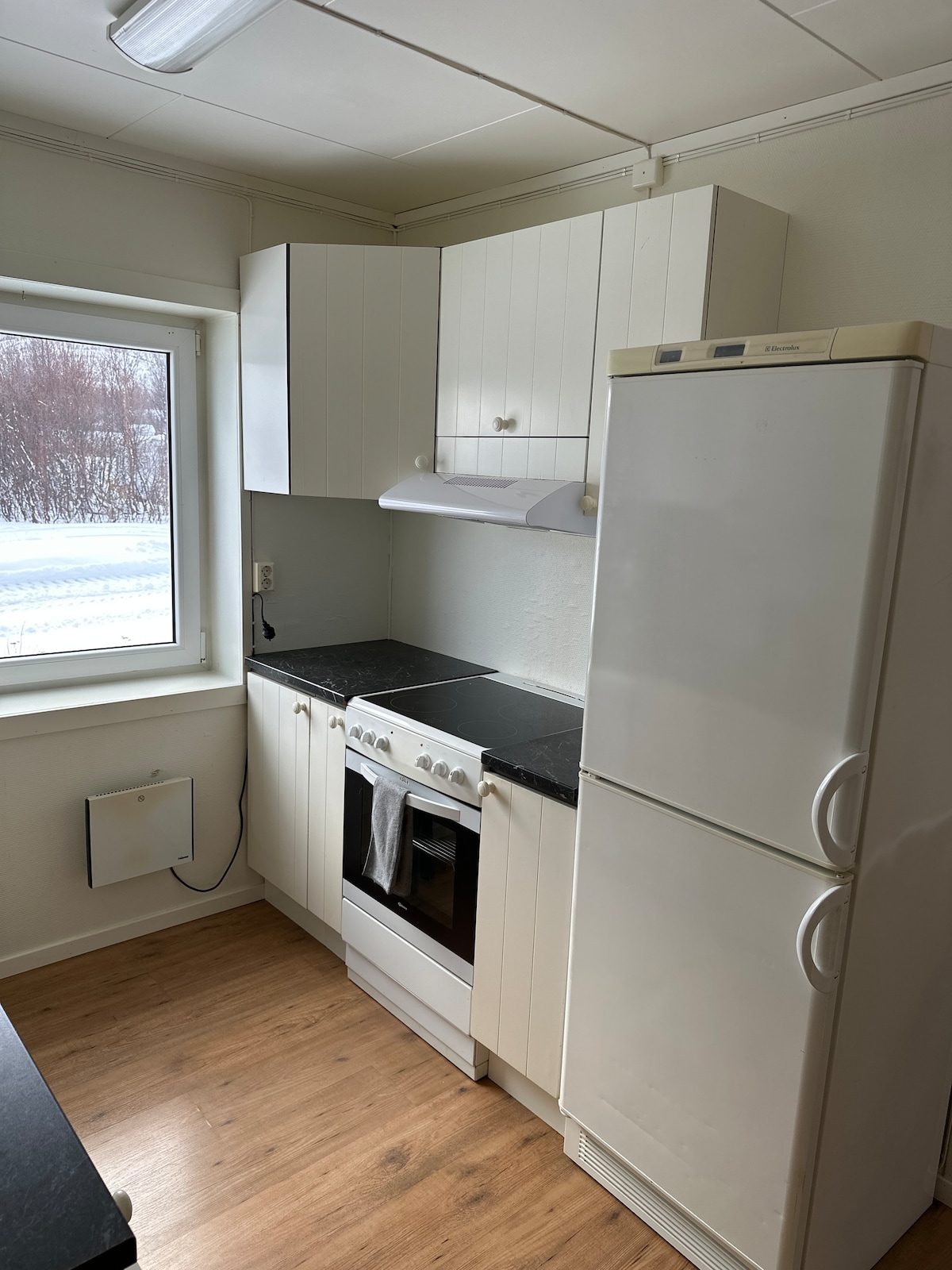 El apartamento se completó en el verano de 2023. Es luminoso y moderno y consta de una cocina con todas las instalaciones, una sala de estar con zona de sofá y TV, un baño con una gran ducha, un pasillo y un dormitorio con una cama de 150 cm. Todas las habitaciones tienen una ventana con vistas a la zona del puerto de Hammerfest, Melkøya y Håja. El departamento se encuentra en una calle lateral sin tráfico, a solo 5 minutos a pie del centro de la ciudad. Lamentablemente, no tenemos aparcamiento porque la calle es demasiado estrecha.