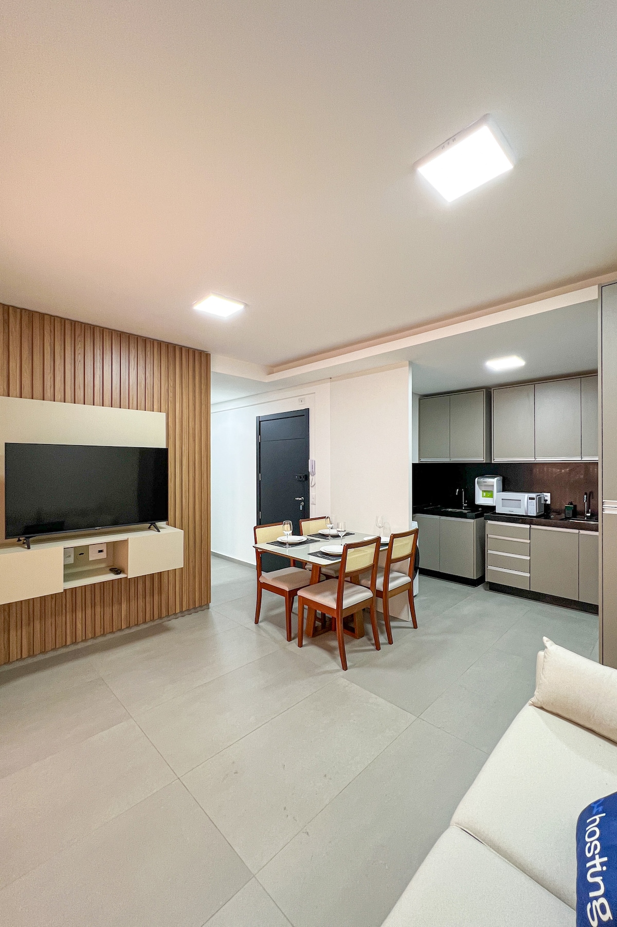 Apartamento moderno, 32m2, ubicado en el mejor punto de Sion. Cocina práctica con minibar, cocina, TV (canales abiertos/Netflix), aire acondicionado, secador de pelo, hervidor eléctrico e internet. Zona Sur, junto a la Plaza JK y la Avenida Bandeirantes, frente a un supermercado. Azotea del edificio con gimnasio, sauna, piscina, sala de estar y cocina comunitaria (agua, máquina de hielo). Limpieza a pedido disponible. Edificio seguro con conserjería las 24 horas. *No hay garaje incluido.