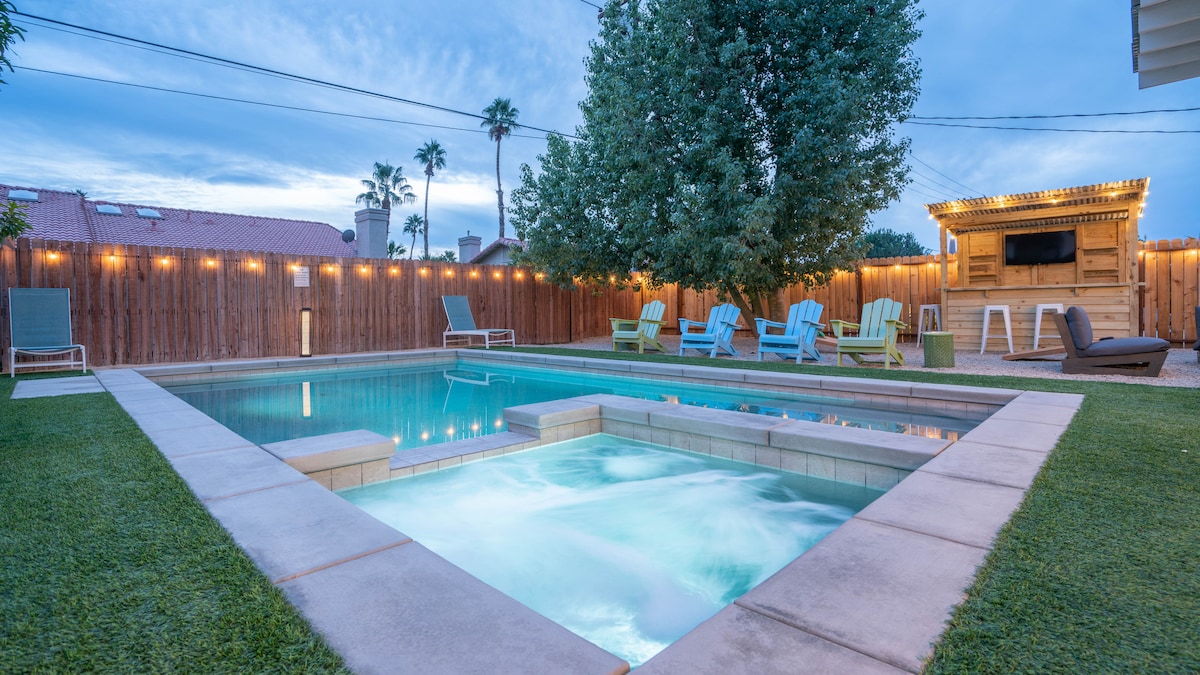¡Disfruta de esta INCREÍBLE comunidad cerrada en Bermuda Dunes! Las evaluaciones de 5 estrellas deliran con el ENORME patio trasero: ¡tu RESORT PRIVADO! → Disfruta de una gran cantidad de actividades en el patio trasero, una piscina con tobogán acuático y spa, pickleball y voleibol. → Juegos en abundancia, voleibol de arena y un pozo para fogatas para hacer s'mores. Cocina → totalmente equipada: ¡prepara una tormenta! Amplio, limpio y perfecto para grupos. ¡Respuestas RÁPIDAS y AMIGABLES del anfitrión! ¡RESERVA AHORA para una estancia inolvidable!