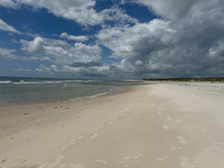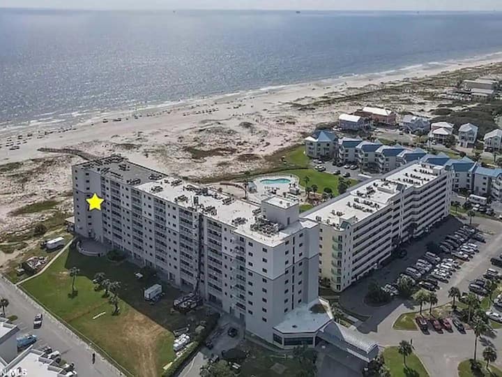 Piscina climatizada, frente al golfo, se admiten perros, equipo de playa