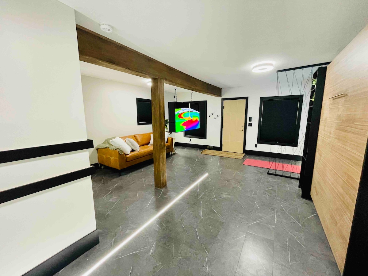 Refúgiate en este estudio renovado, energéticamente eficiente y de bajos residuos en el centro de Lansing con vistas al patio de la capital. Rediseñado como parte de la reciente revitalización de edificios hermanos de uso mixto de 1920; entra en el loft privado con suelos de madera originales restaurados, encimeras personalizadas, cabecero único, contrastes audaces y papel tapiz inesperado con estampado de pitón. Ionia St. BnB está a poca distancia a pie del complejo Capital, el sendero del río, el estadio de béisbol, cervecerías, museos y mucho más.