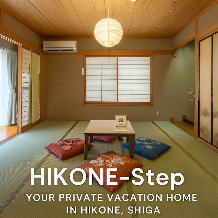 Alquiler de una casa para 12 personas a 5 minutos a pie del castillo de Hikone y a 5 minutos a pie de Hikonechaya. A 1 hora en coche de Grand Snow Resort. Aparcamiento gratuito para 3 coches.