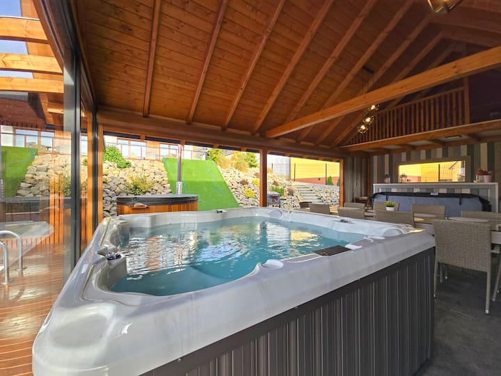 Casa con jacuzzi, sauna y piscina de verano sobre el lago