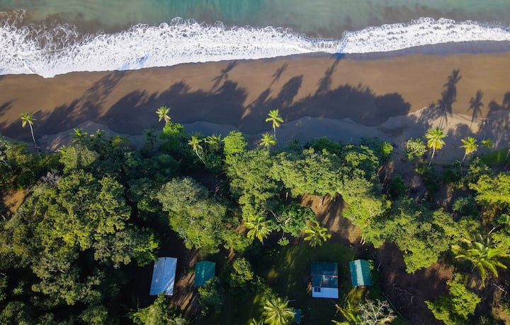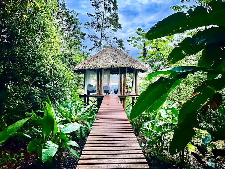 Cabaña en la selva, vista al mar, fogata, desayuno
