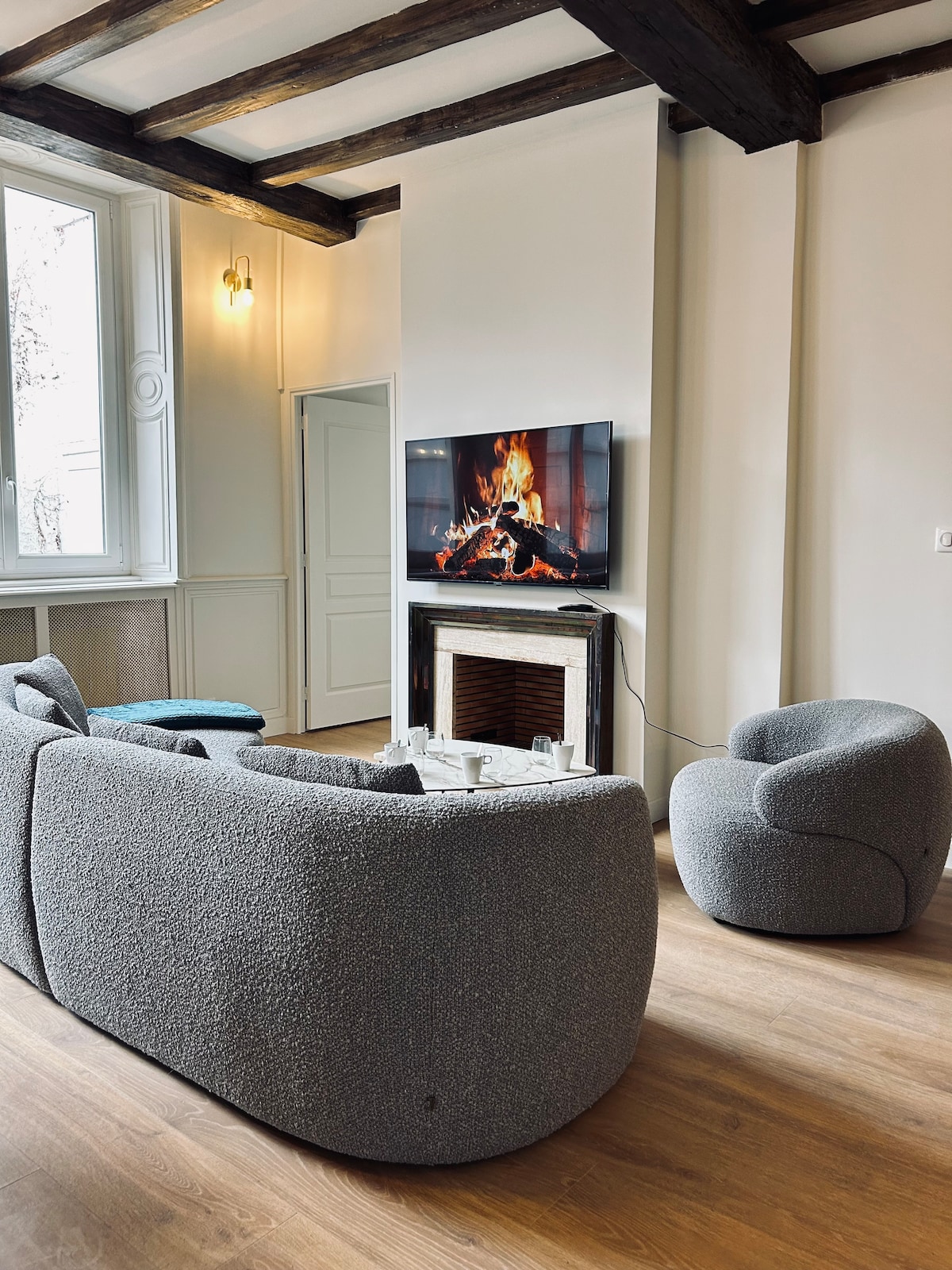 KRAFFT es un acogedor apartamento de 79 m2, situado en el centro de Reims, con capacidad para 4 personas. Se encuentra en el segundo piso de un pequeño edificio de Reims de solo 3 viviendas. Completamente renovado, consta de 2 dormitorios con ropa de cama de hotel de alta gama, una sala de estar de 29 m2 – TV - WFI, una cocina equipada, un baño con el dormitorio principal, un cuarto de ducha, un aseo independiente. Está equipado con aire acondicionado reversible.