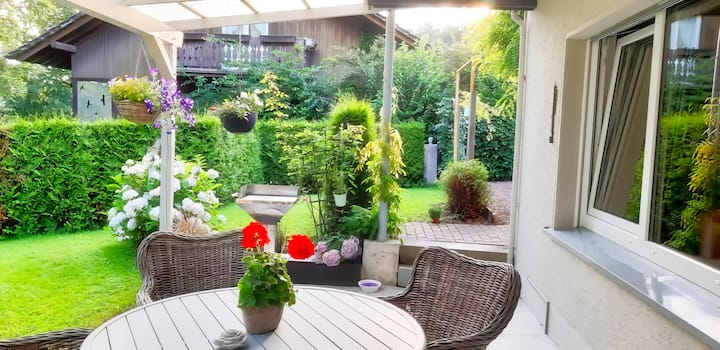 Apartamento de 2 habitaciones cerca de la ciudad con un oasis verde en el patio