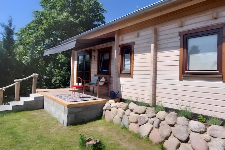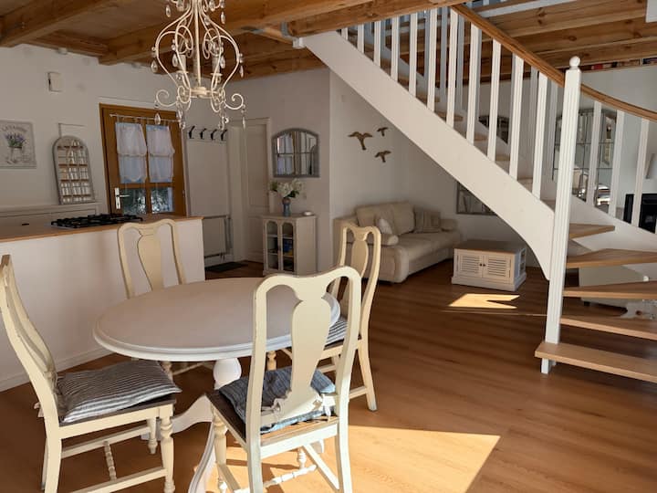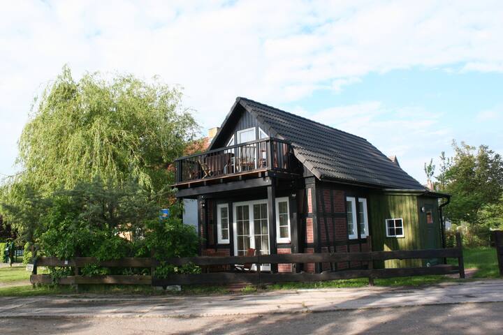 Haffschein-Hermosa casa de entramado de madera junto a la playa y el puerto