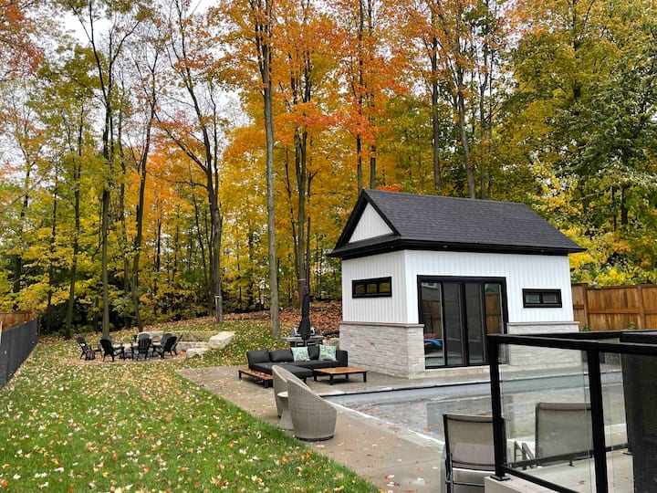 ¡Casa cabaña de nueva construcción! ¡Piscina + jacuzzi!