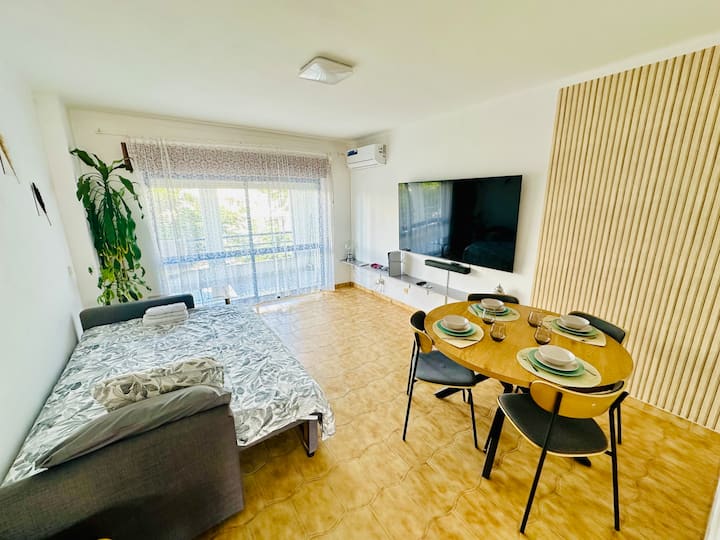 [¡Playa a 2 minutos! y piscina] Aparcamiento privado, aire acondicionado y wifi