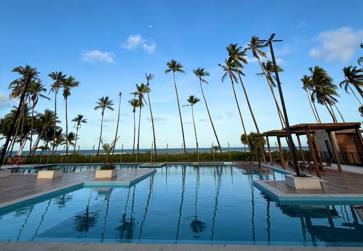 Apartamento en primera línea de playa 2/4, garaje, aire acondicionado y piscina