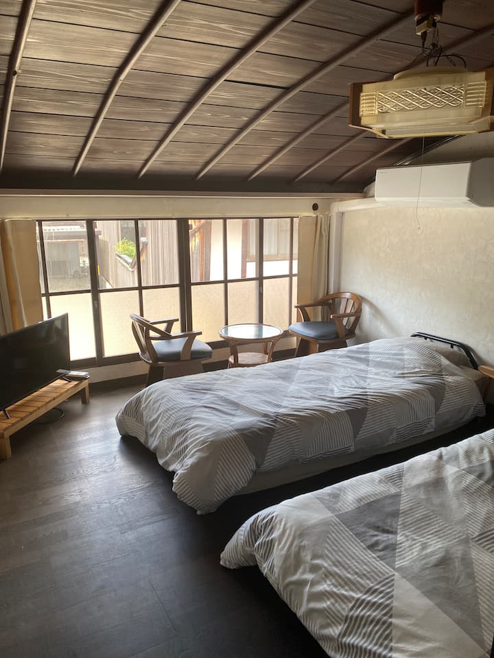 Una casa de huéspedes donde se conserva la antigua apariencia de Chaya-machi Kohama Sanden-cho, cerca del mar, y donde el "Ryotei Futaba" ha revivido. Habitación con techo de barco retro de Showa