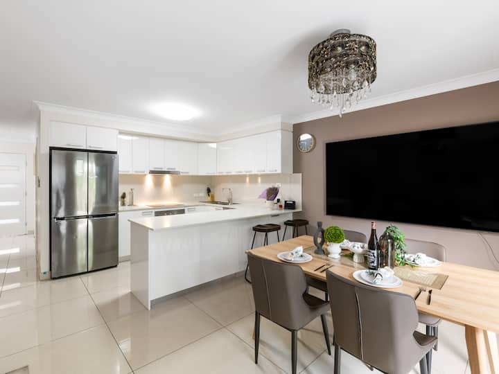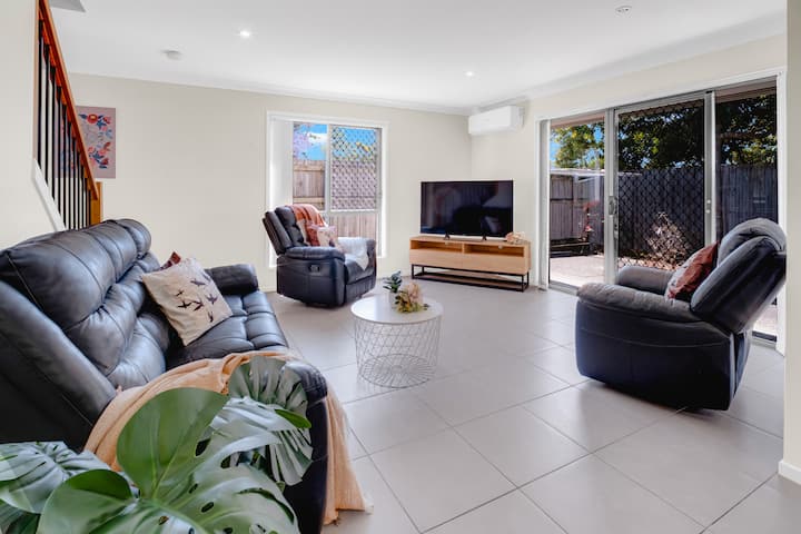 A 2 minutos de tiendas, cafetería, 3 baños, 4 camas tamaño queen.
