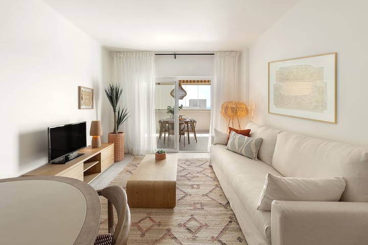Apartamento renovado en la playa D. Ana con aire acondicionado y piscina