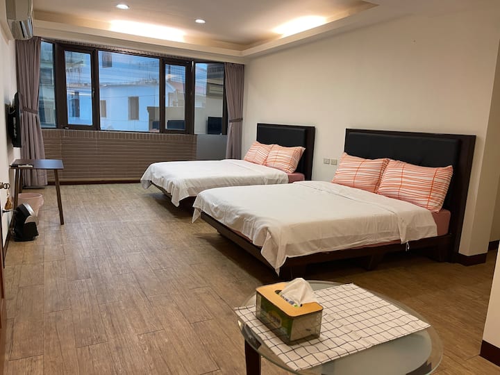 Terraza insignia TPE habitación doble grande/utensilios de cocina y baño de alta gama completos/cerca del distrito comercial/estación de tren de Taipei, estación de metro Zhongshan a 10 minutos a pie