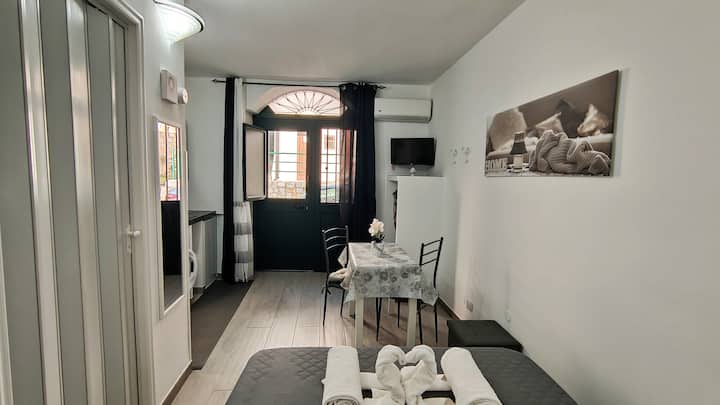 pequeña habitación y baño con vistas al valle de la casa de Castiglia