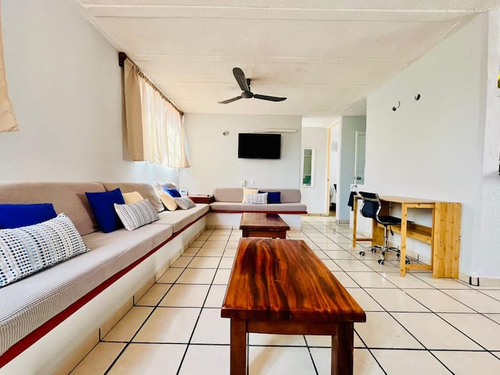 Depa Tepka céntrico, planta alta, balcón, starlink
