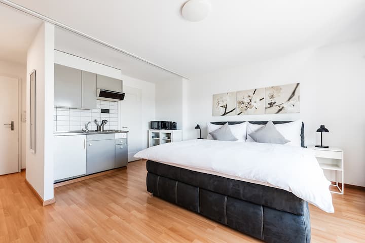 Ubicación tranquila, cerca del lago, en la ruta ciclista, terraza exterior.