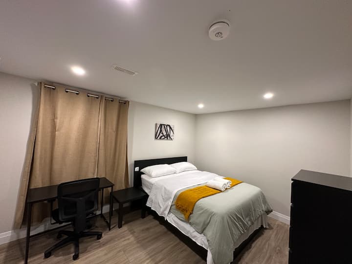 Acogedora habitación privada con una cama tamaño queen cerca de la Universidad de Washington