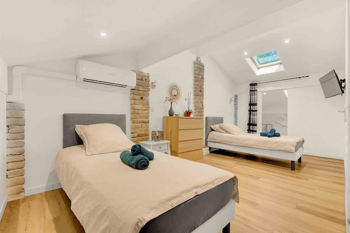 Habitación acogedora en casa de familia-spa-terraza-aparcamiento