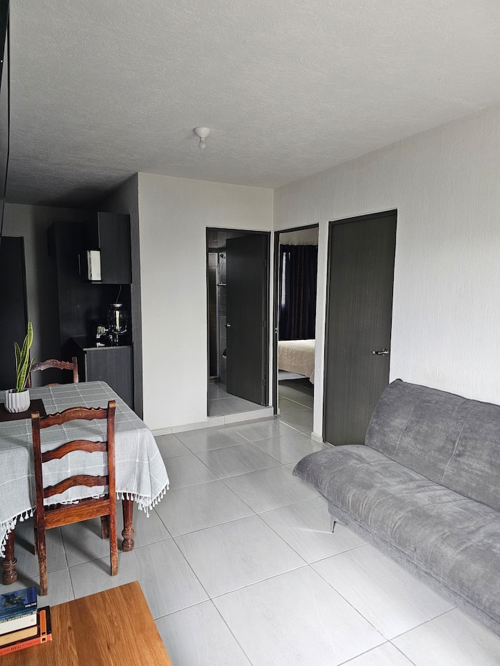 Departamento entero con 2 cuartos amplios,cocina, baño y balcon con vista a las montañas.
