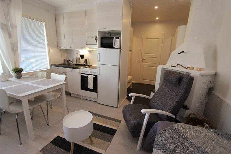 Esta casa de vacaciones está situada en la parte alta de la colina Kaunispää, en la que la torre de observación de cazadores de auroras boreales está a solo 10 minutos a pie. Este alojamiento tiene una sala de estar, cocina y dos camas individuales que se pueden convertir fácilmente en una cama doble. La cocina es una cocina completamente funcional que es ideal para cocinar. El baño es espacioso con sauna de estilo moderno y tintorería para el cabello. Otra hazaña: lavavajillas, lavadora, tintorería independiente, plancha y tabla de planchar, WiFi+ TV inteligente, radio por internet